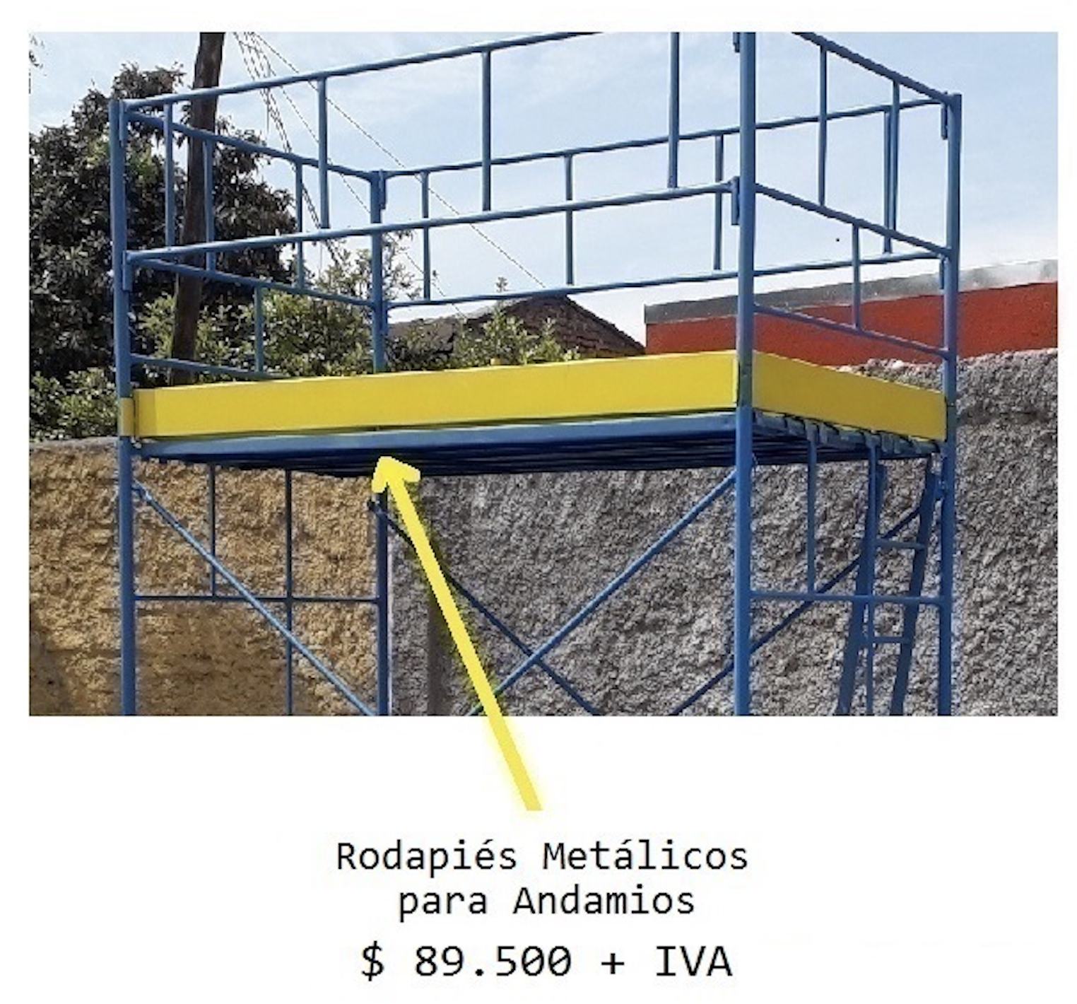 ANDAMIOS Tablones Metálicos nuevos para Andamios (ver imágenes) Medidas: 2.25 m (largo) x 22 cm (ancho) Precio $ 38.900 + IVA 3.- BARANDA PARA